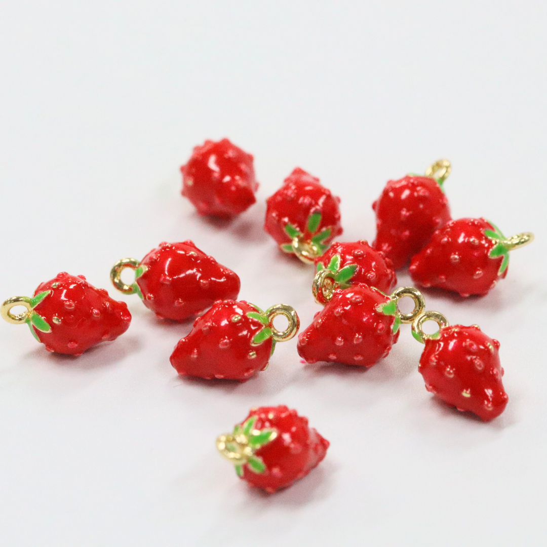 レッドストロベリー / ゴールドカラー/ 4個 / 真鍮 / 6.7 x11.4mm
