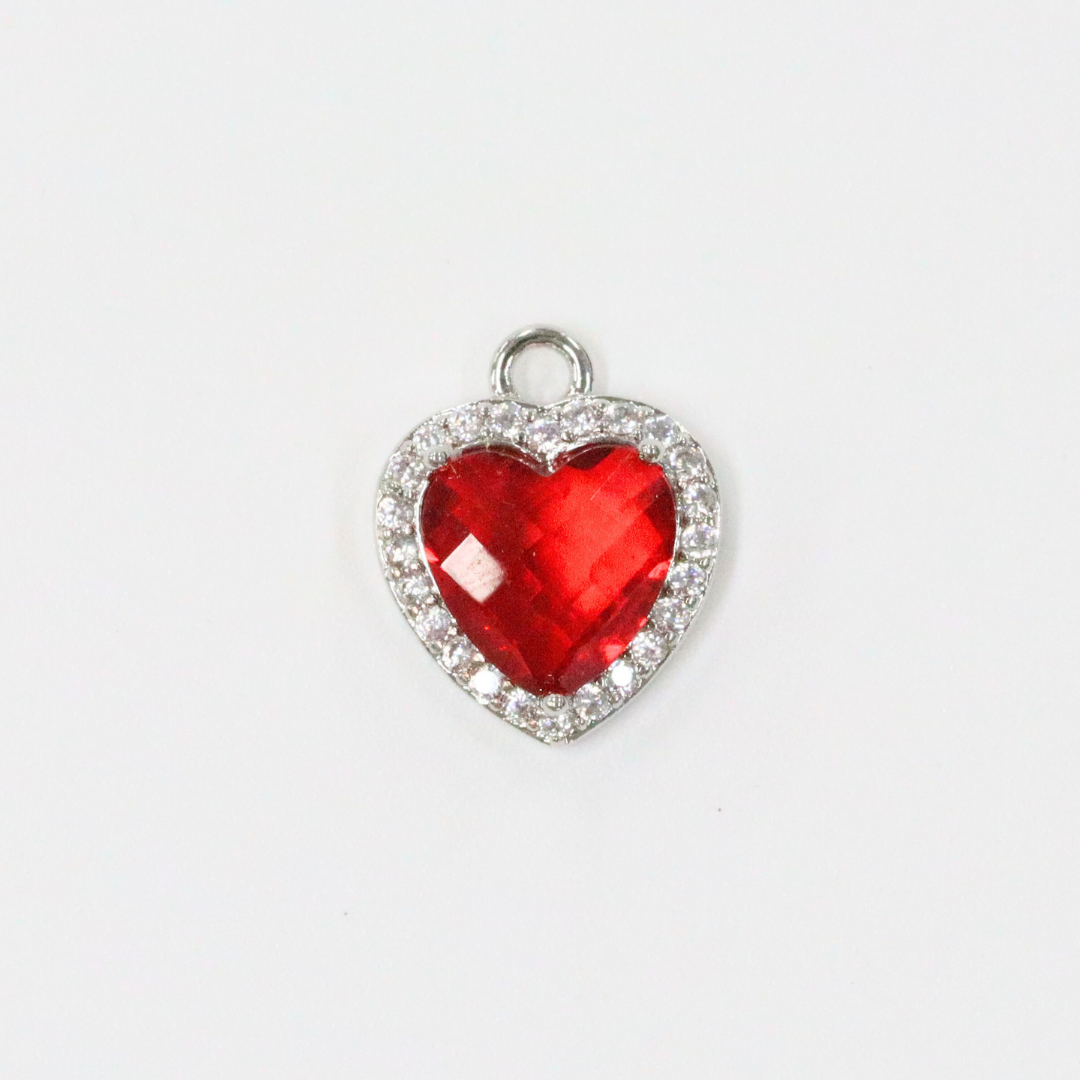 ルビーハート / シルバーカラー / 3個 / 真鍮 / 10.9 x 13.3mm