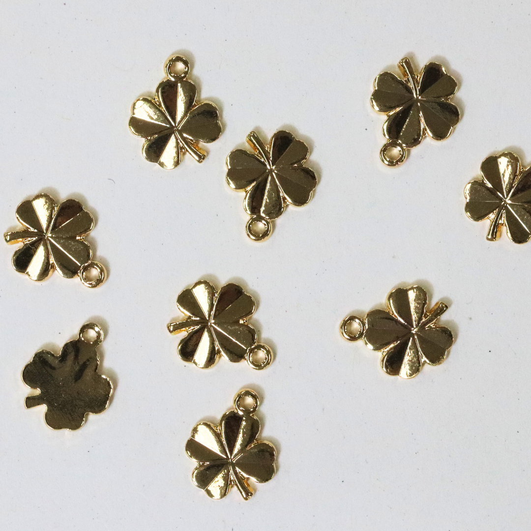 ソリッドクローバー / ゴールドカラー / 8個 / 真鍮 / 9.0 x 10.9mm